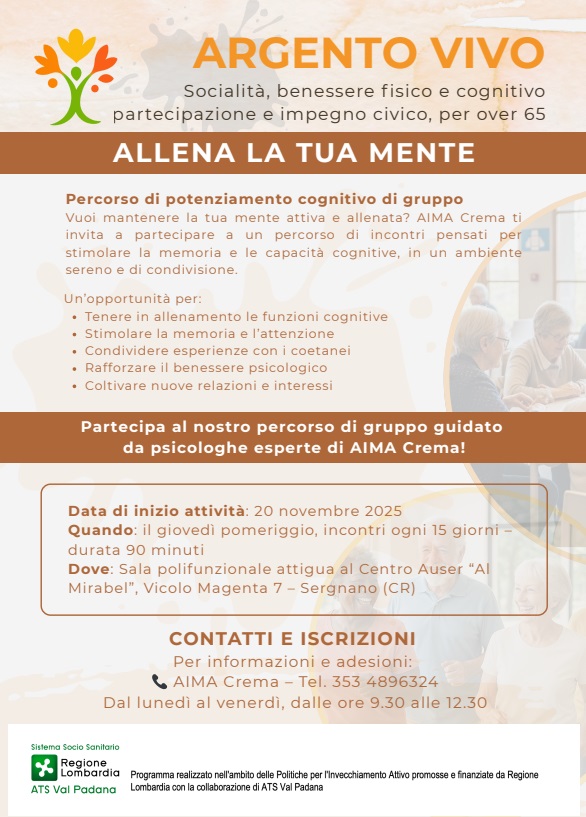 - “ATTIVA-MENTE IN GRUPPO”: programma di stimolazione cognitiva – motoria